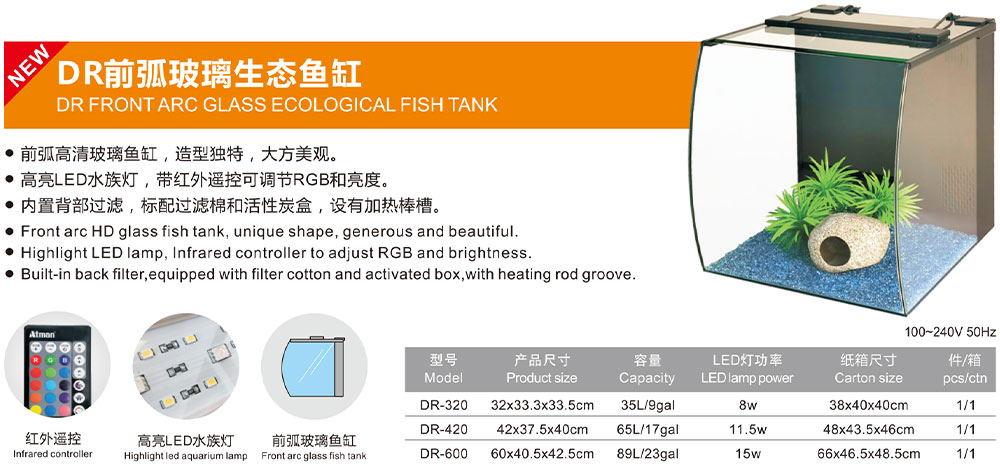 DR FRONT ARC GLASS ECOLOGICAL FISH TANK